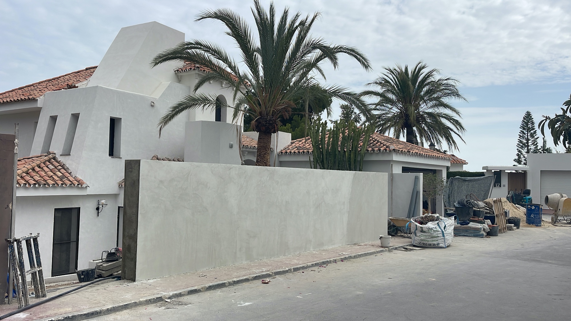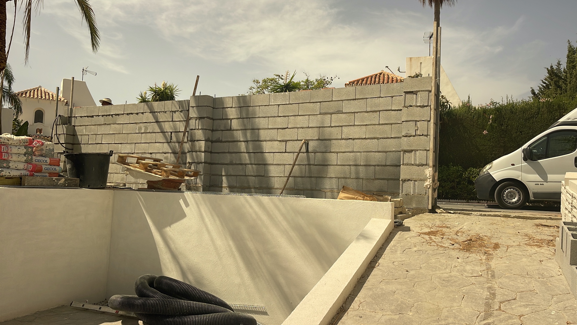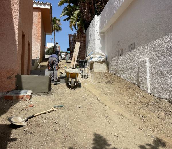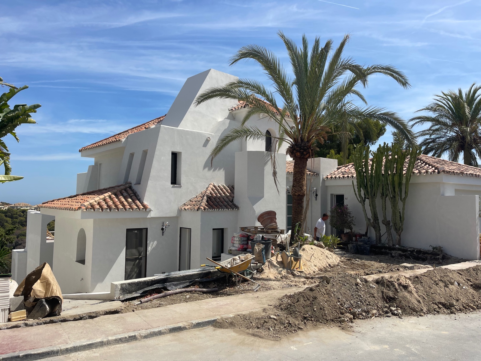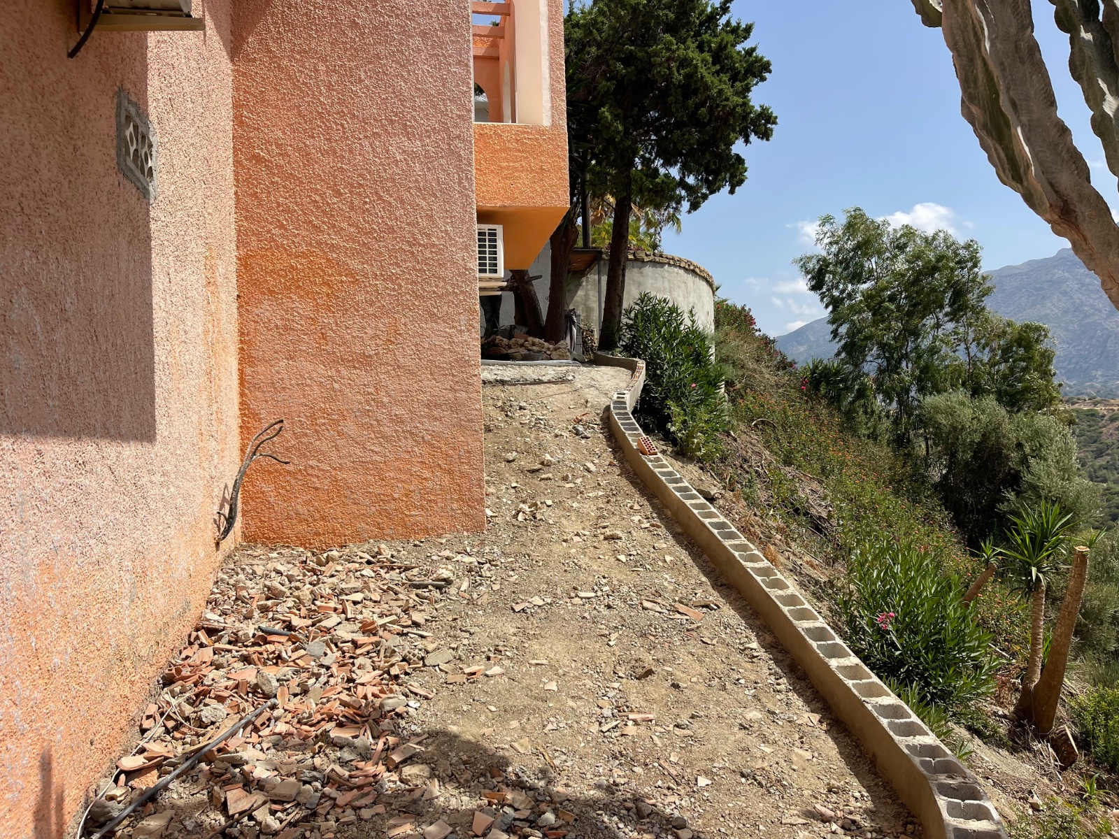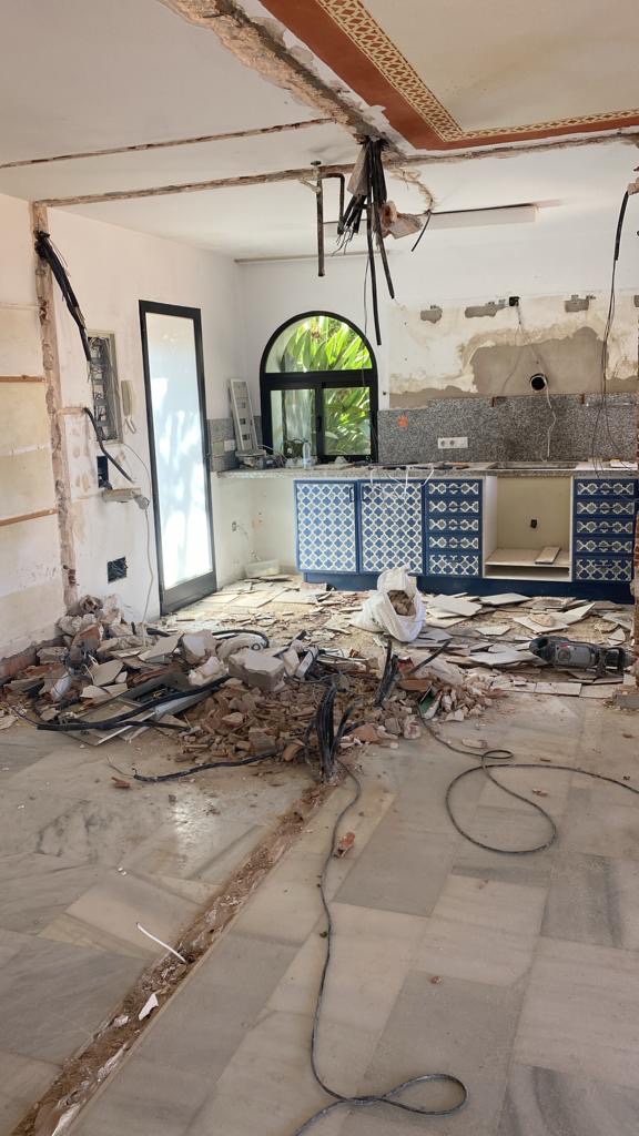 We zijn net klaar met het interieur en zijn daarna verder gegaan met de buitenkant: Volledige reparatie en renovatie van de gevel, structurele versterking van de kelderbasis aangezien het een hangend huis is, nieuw zwembad, volledige renovatie van het terras met typisch Andalusische terracotta tegels. .