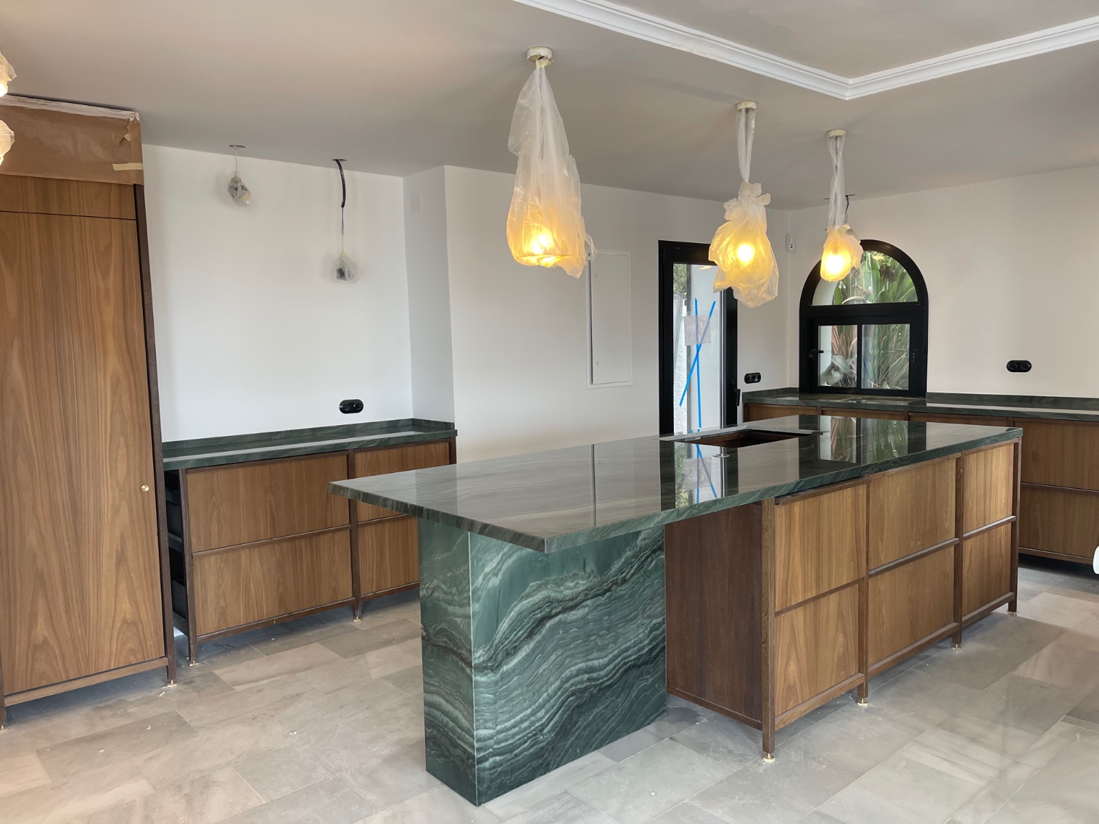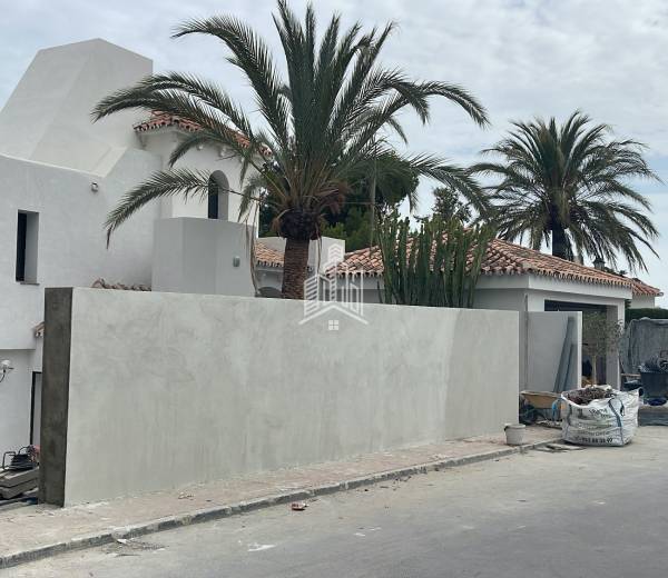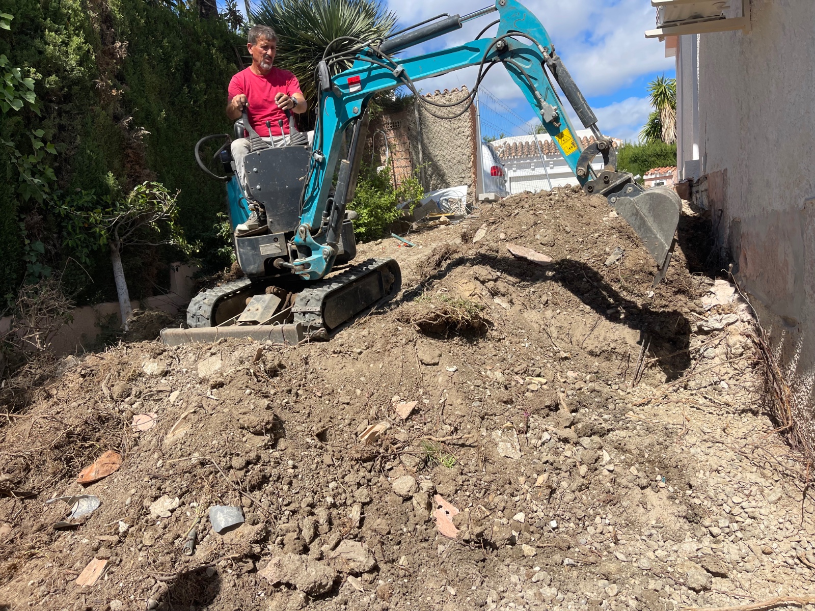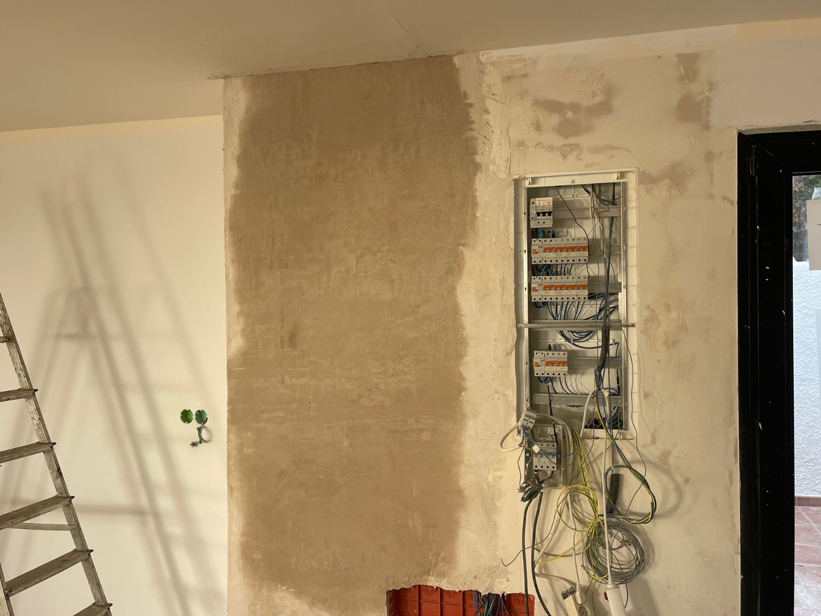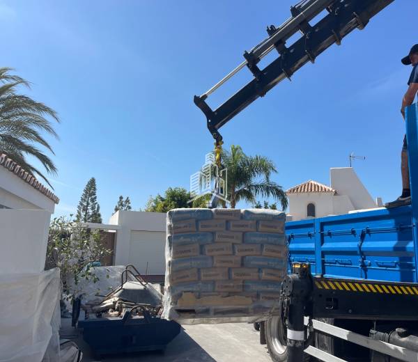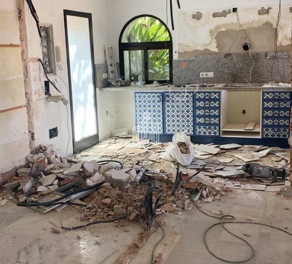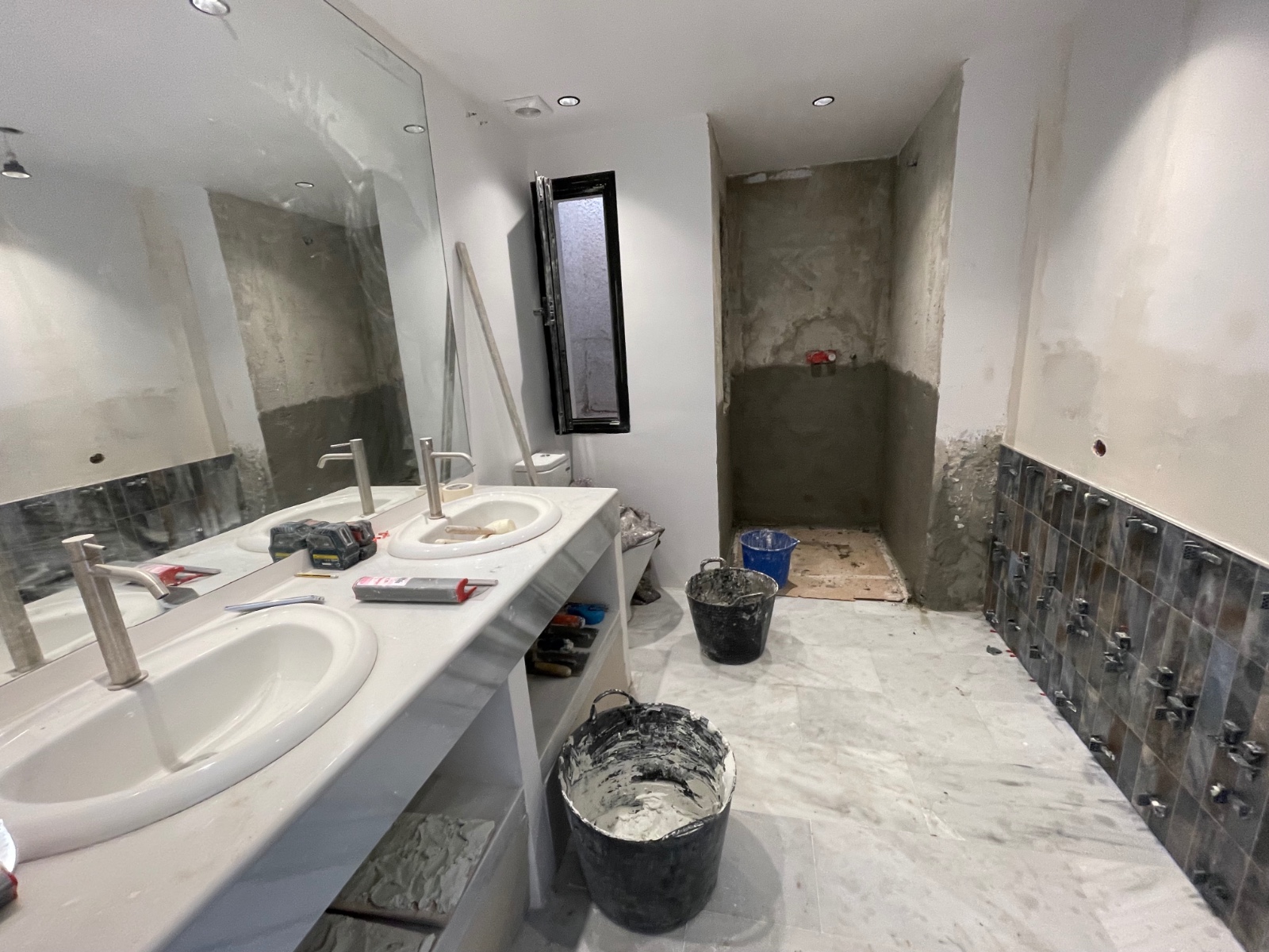 We zijn net klaar met het interieur en zijn daarna verder gegaan met de buitenkant: Volledige reparatie en renovatie van de gevel, structurele versterking van de kelderbasis aangezien het een hangend huis is, nieuw zwembad, volledige renovatie van het terras met typisch Andalusische terracotta tegels. .