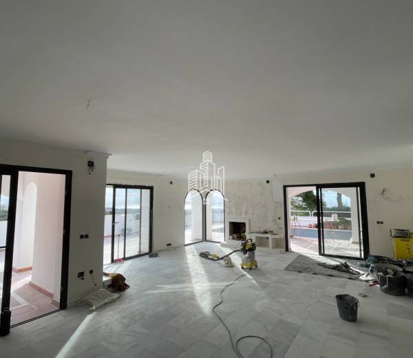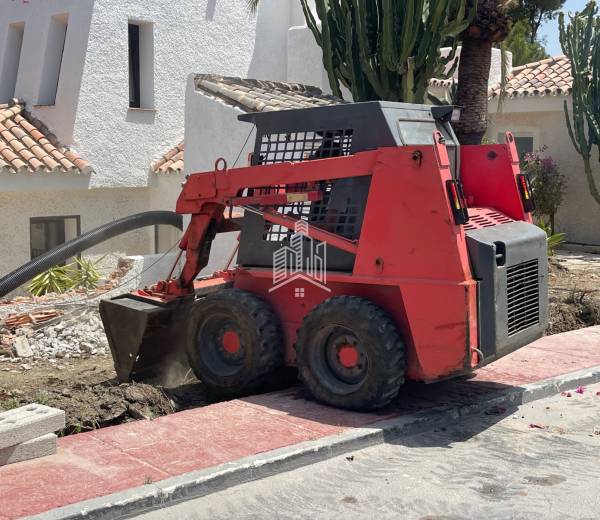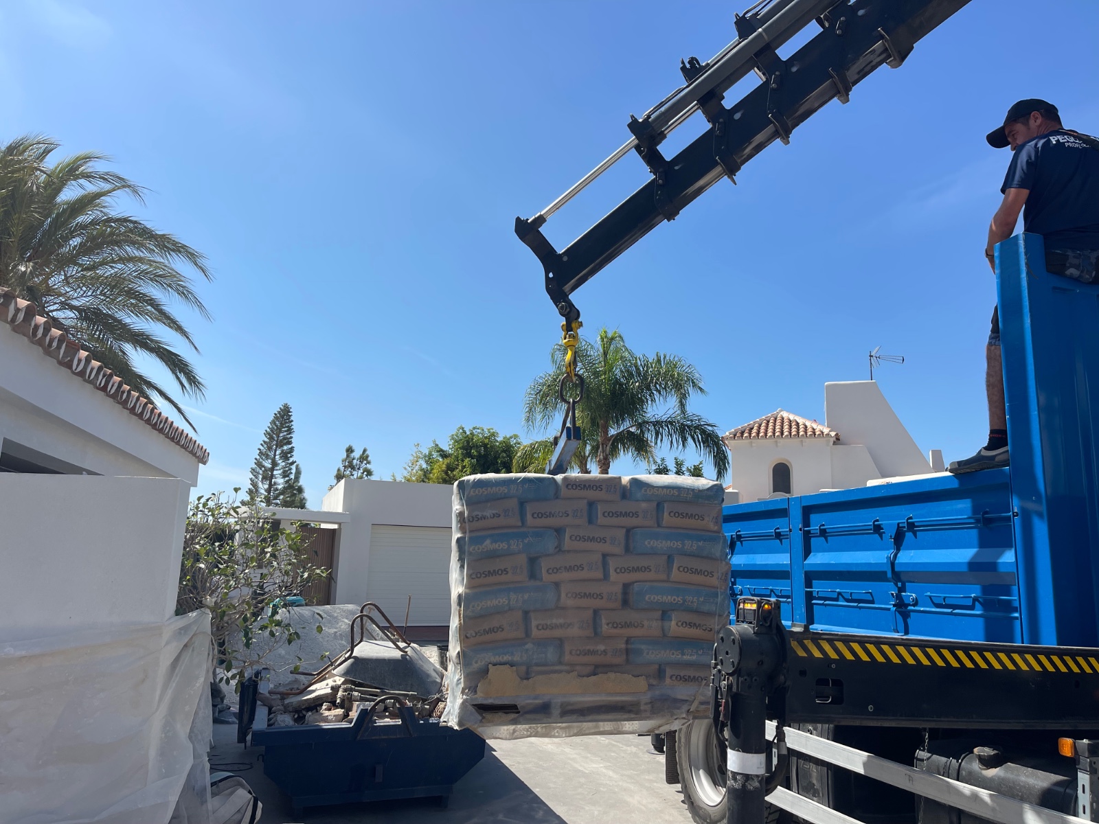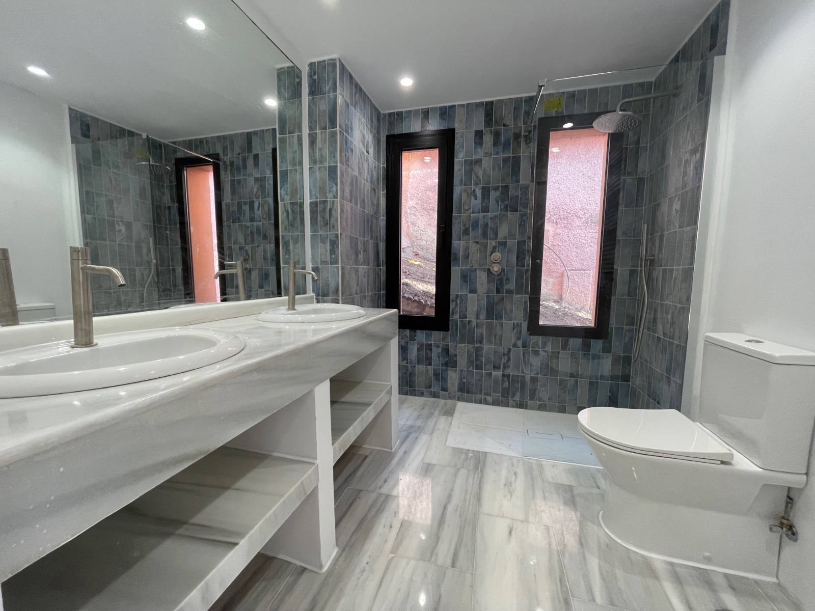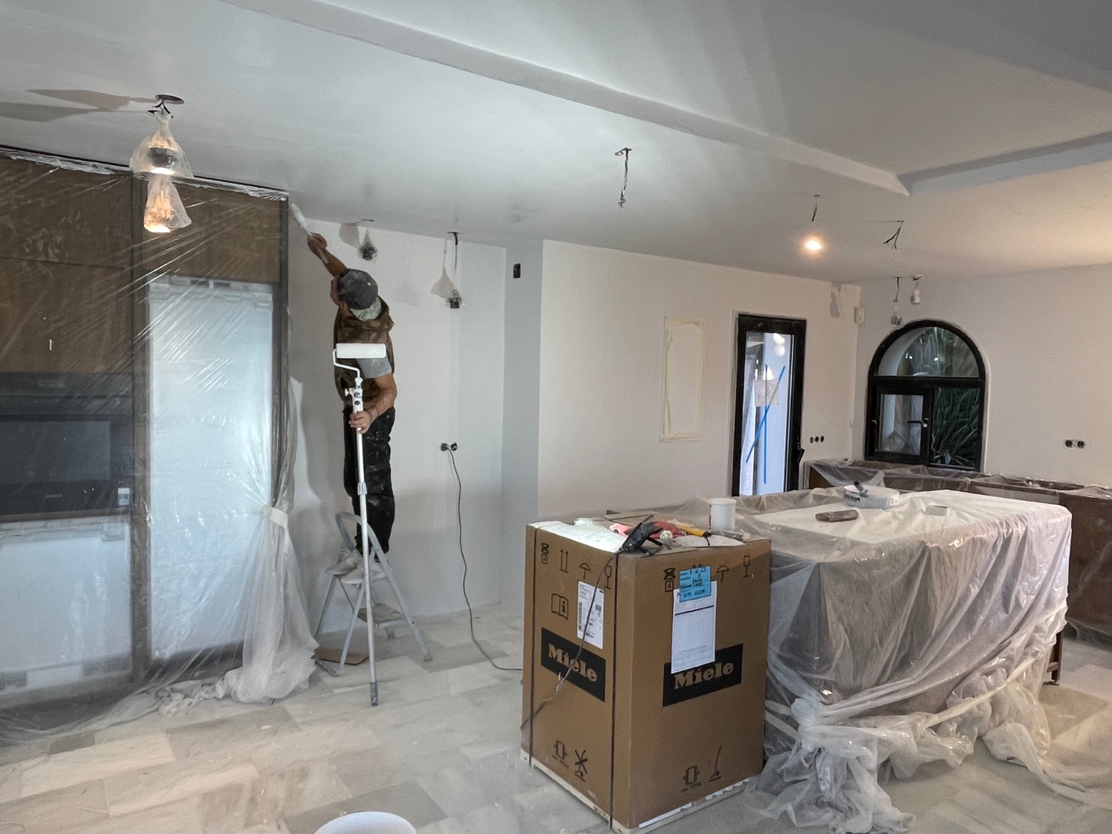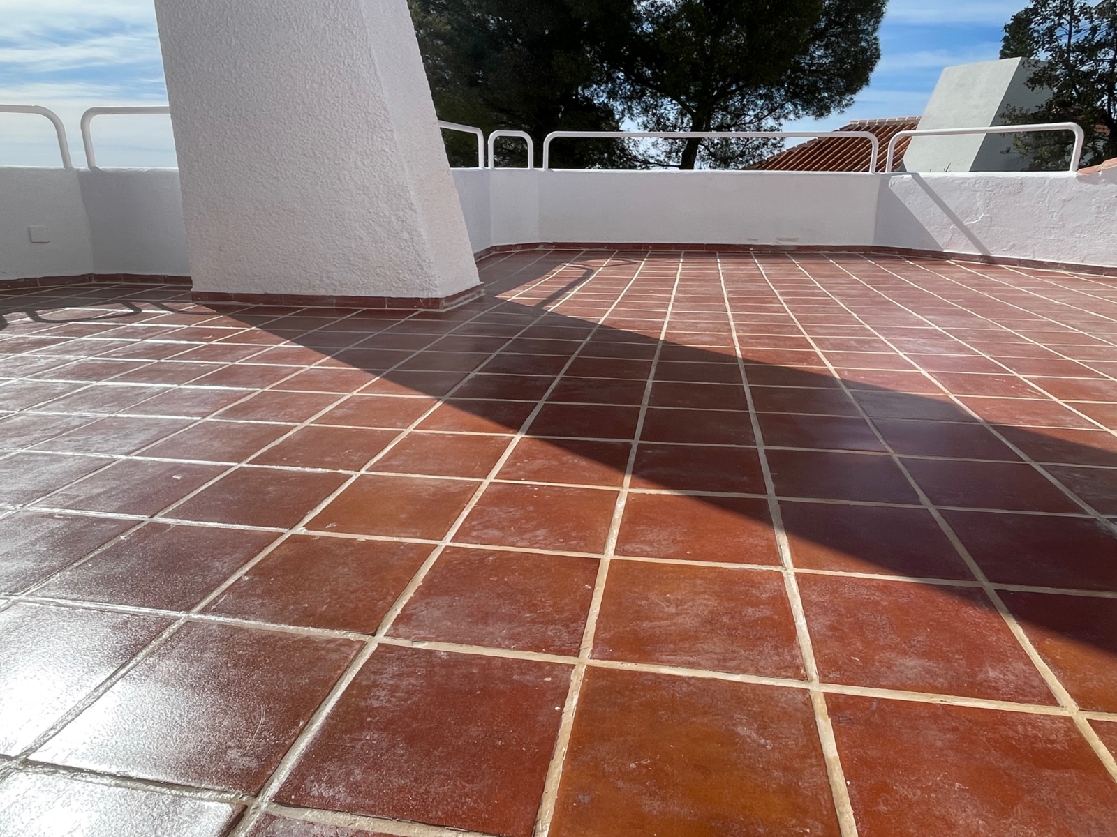 We zijn net klaar met het interieur en zijn daarna verder gegaan met de buitenkant: Volledige reparatie en renovatie van de gevel, structurele versterking van de kelderbasis aangezien het een hangend huis is, nieuw zwembad, volledige renovatie van het terras met typisch Andalusische terracotta tegels. .