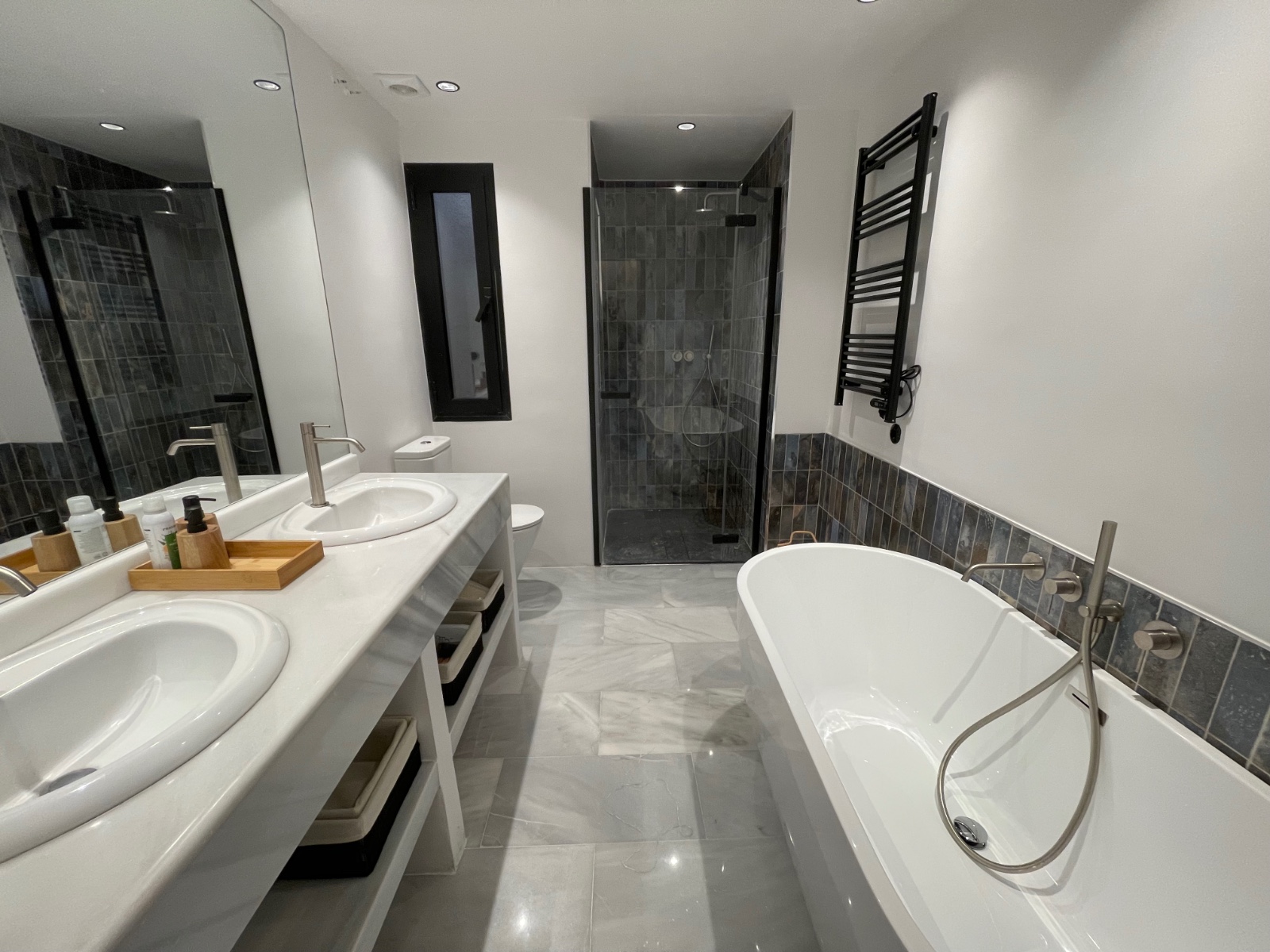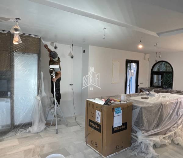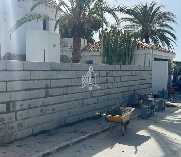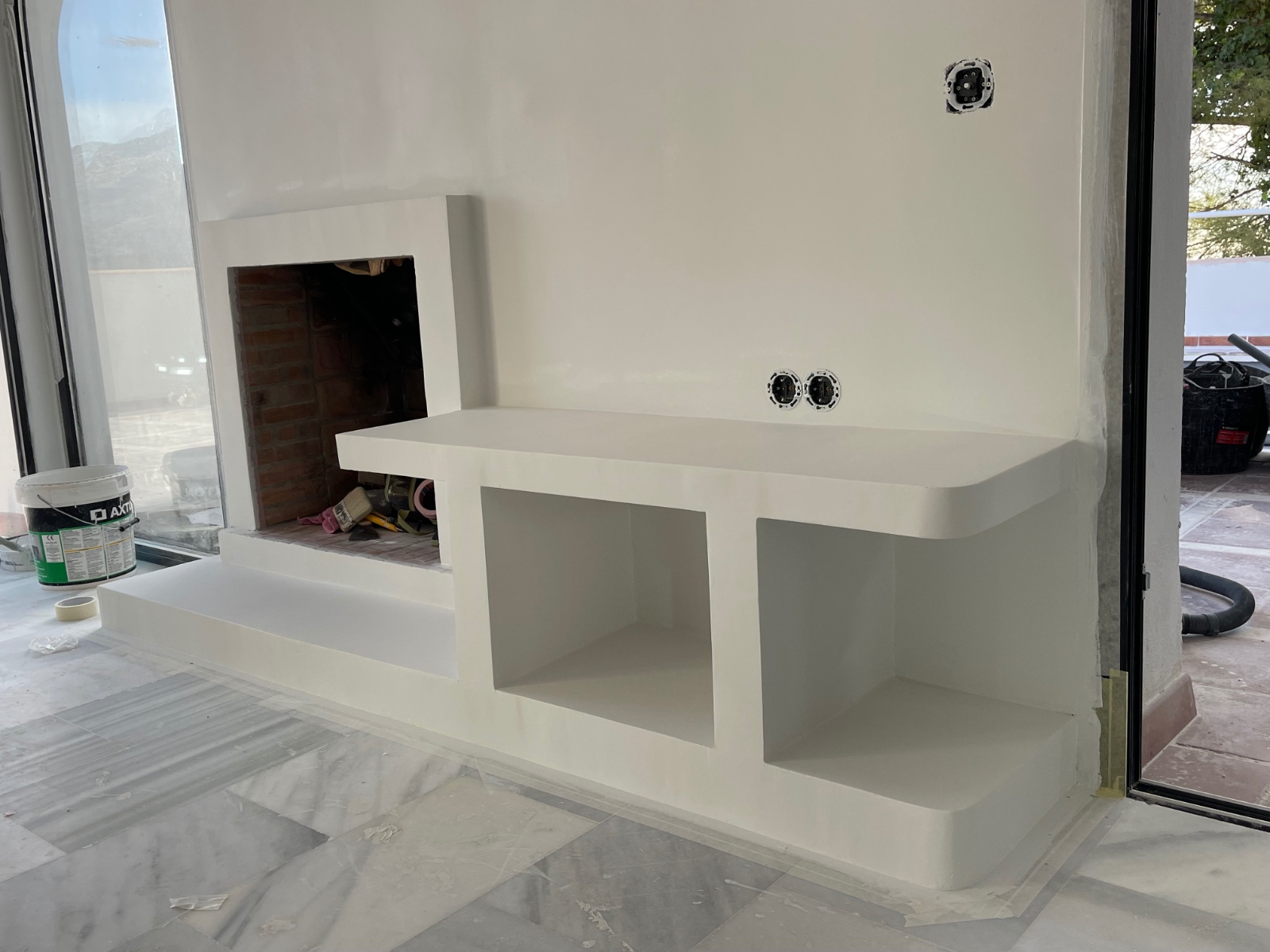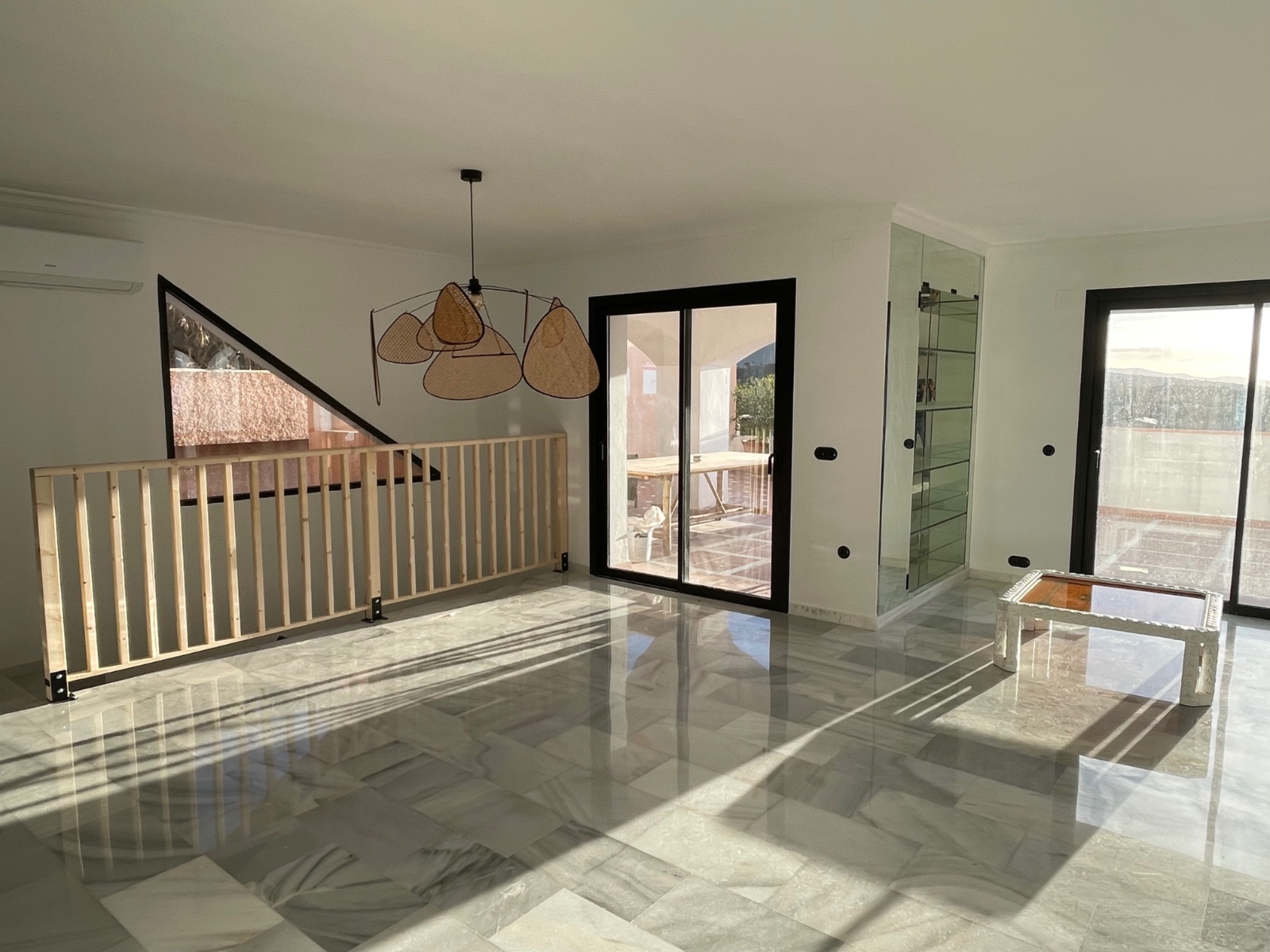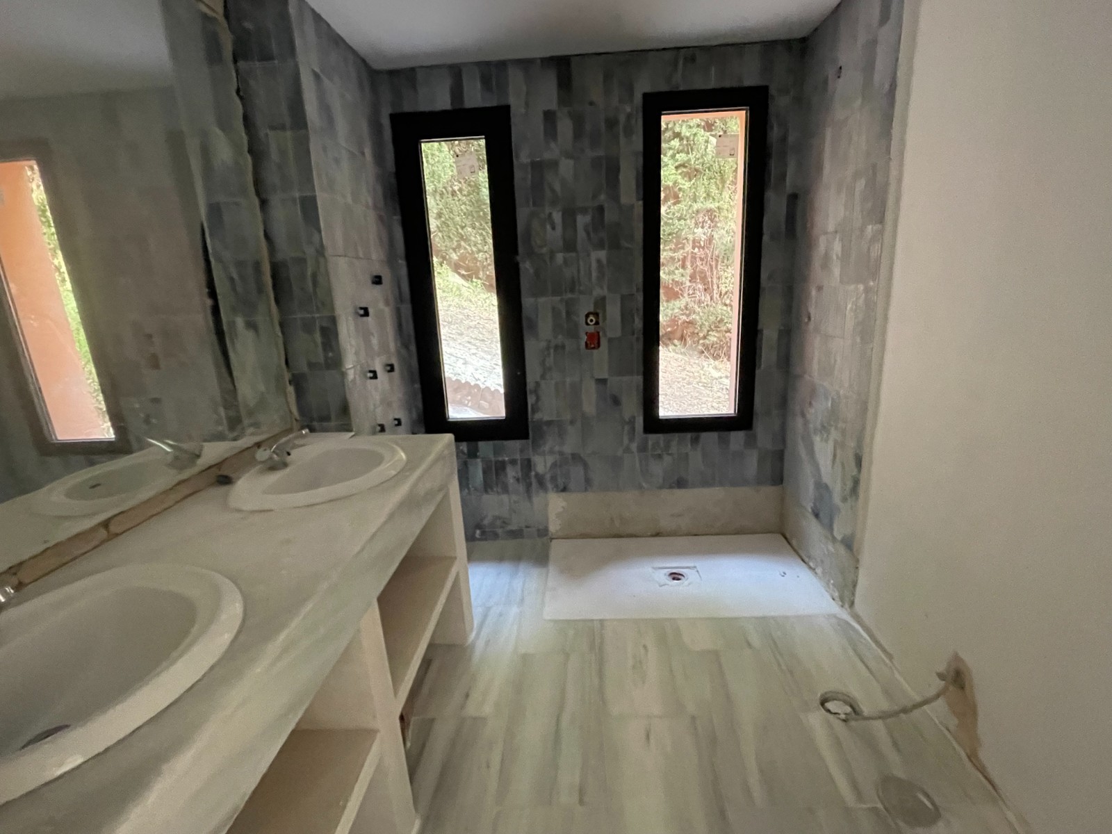 We zijn net klaar met het interieur en zijn daarna verder gegaan met de buitenkant: Volledige reparatie en renovatie van de gevel, structurele versterking van de kelderbasis aangezien het een hangend huis is, nieuw zwembad, volledige renovatie van het terras met typisch Andalusische terracotta tegels. .